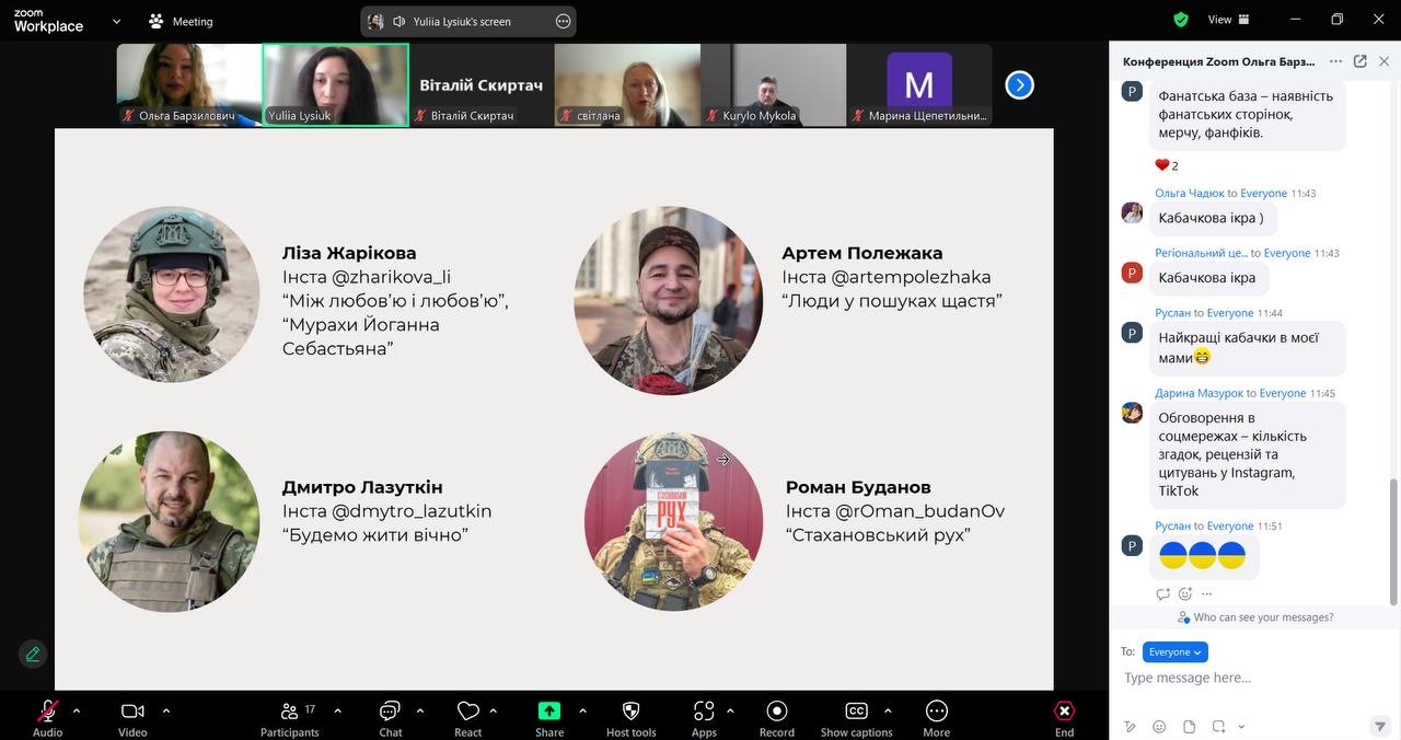 У рамках відзначення Дня українського добровольця, який щороку відзначається 14 березня, нашим закладом освіти було проведено літературну антилекцію «Українські письменники у пікселі». Захід об’єднав здобувачів освіти та педагогічних працівників, привернувши увагу до письменників, які поєднують літературну діяльність із захистом України.