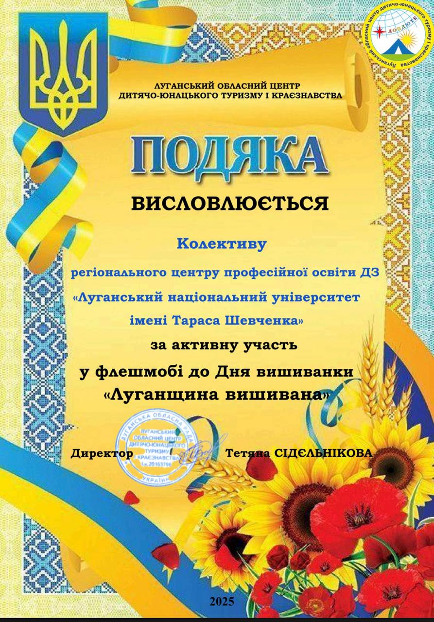 за активну участь у флешмобі до Дня вишиванки “Луганщина вишивана”
