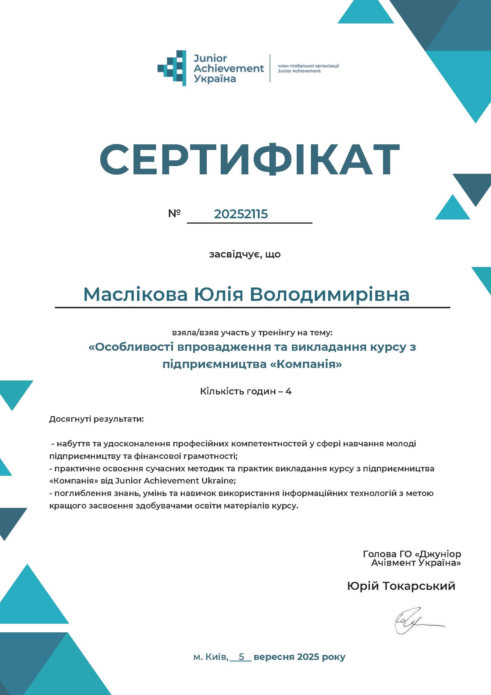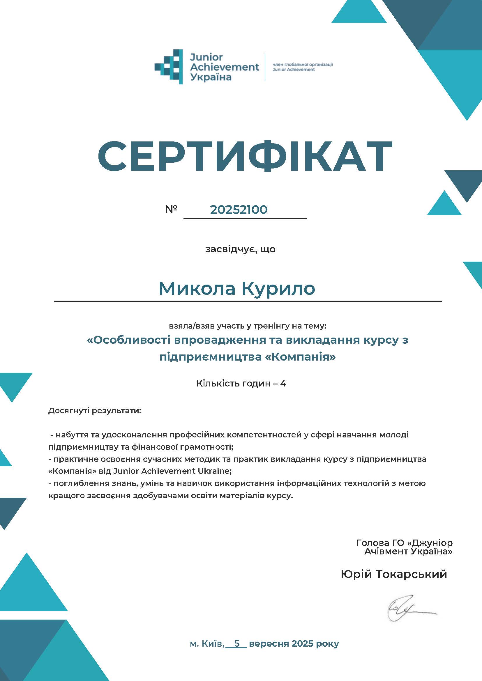 Особливо значущим цей курс є для здобувачів освіти, адже в умовах сучасного світу підприємницькі навички стають необхідними для побудови успішної кар’єри та адаптації до викликів ринку праці. Вивчення курсу «Компанія» дасть здобувачам освіти можливість розвивати креативність, працювати в команді, приймати рішення та бачити власні перспективи у бізнесі чи професійному зростанні.