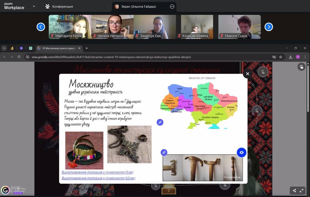 ✨ Наші студенти — Валерія ОСТАПЕНКО та Максим КНЯЗЄВ — 19 вересня взяли участь у практичному інтерактивному занятті «Мисленнєва реконструкція культурної спадщини: мосяжництво, ліжникарство, ложкарство», яке провела Мала академія наук України в межах діяльності клубу «НавКОЛОмислення: роздуми та діалоги» 🥳