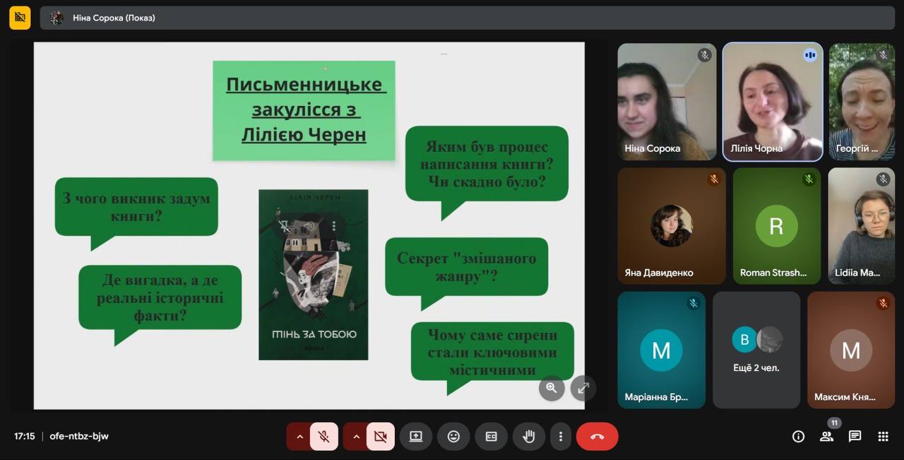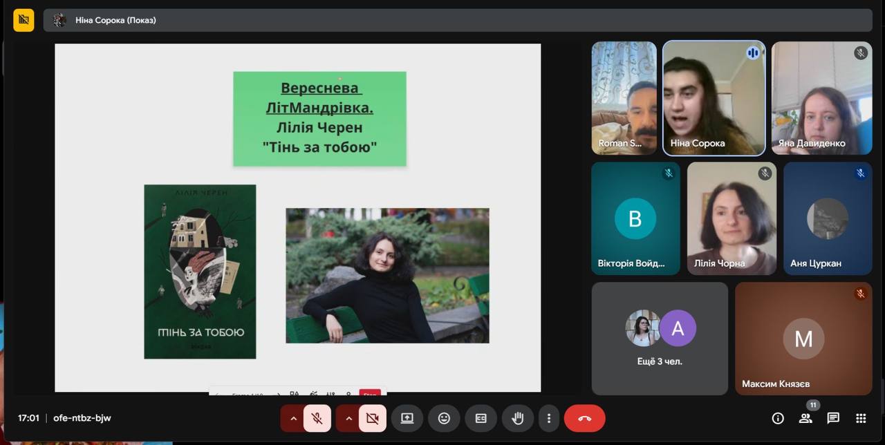 📚 20 вересня вони взяли участь у ЛітМандрівці, яку проводила Луганська обласна універсальна наукова бібліотека. Цього разу онлайновий читацький клуб обговорював книгу «Тінь за тобою» Лілії ЧЕРЕН. Особливістю зустрічі стала можливість поспілкуватися безпосередньо з авторкою твору!