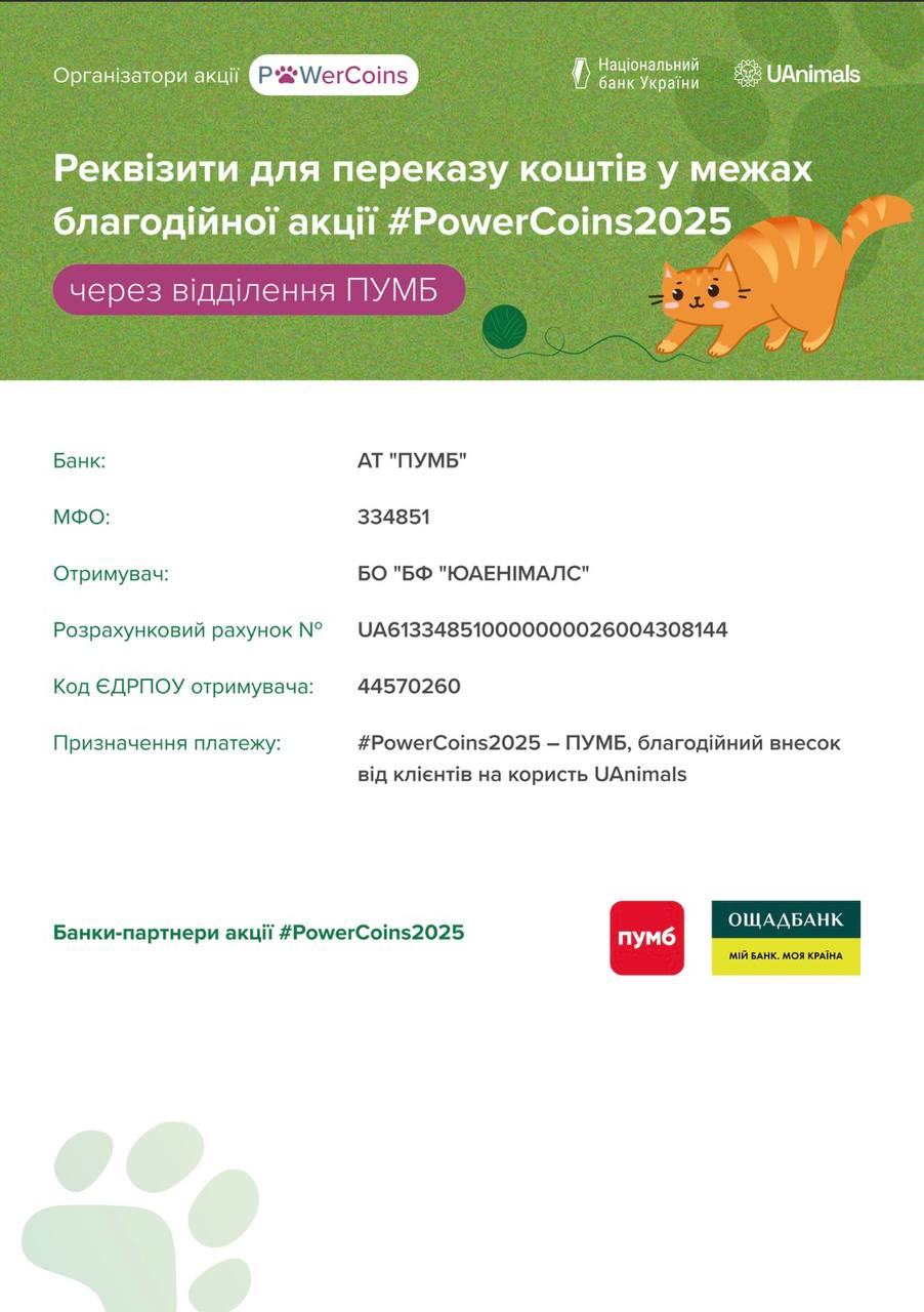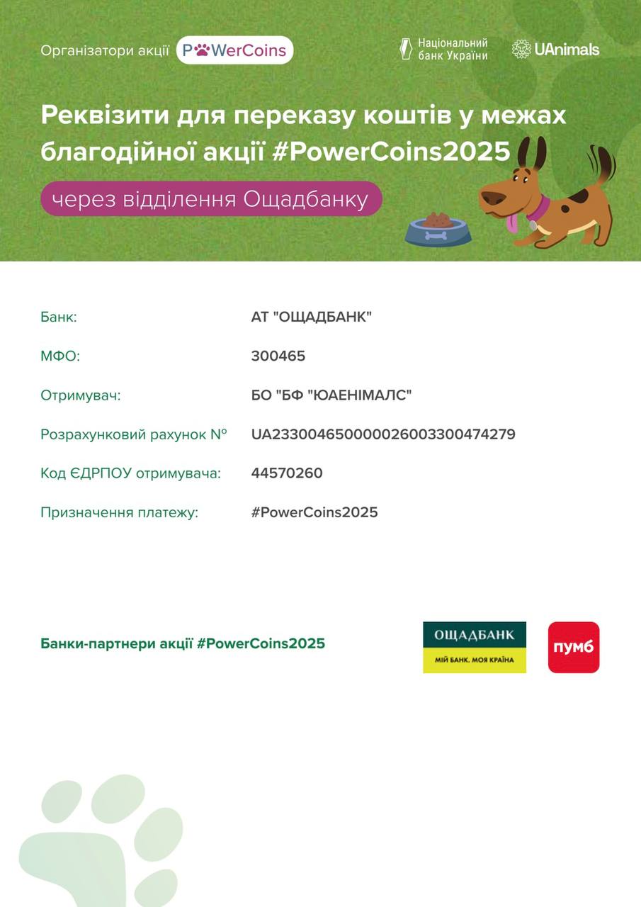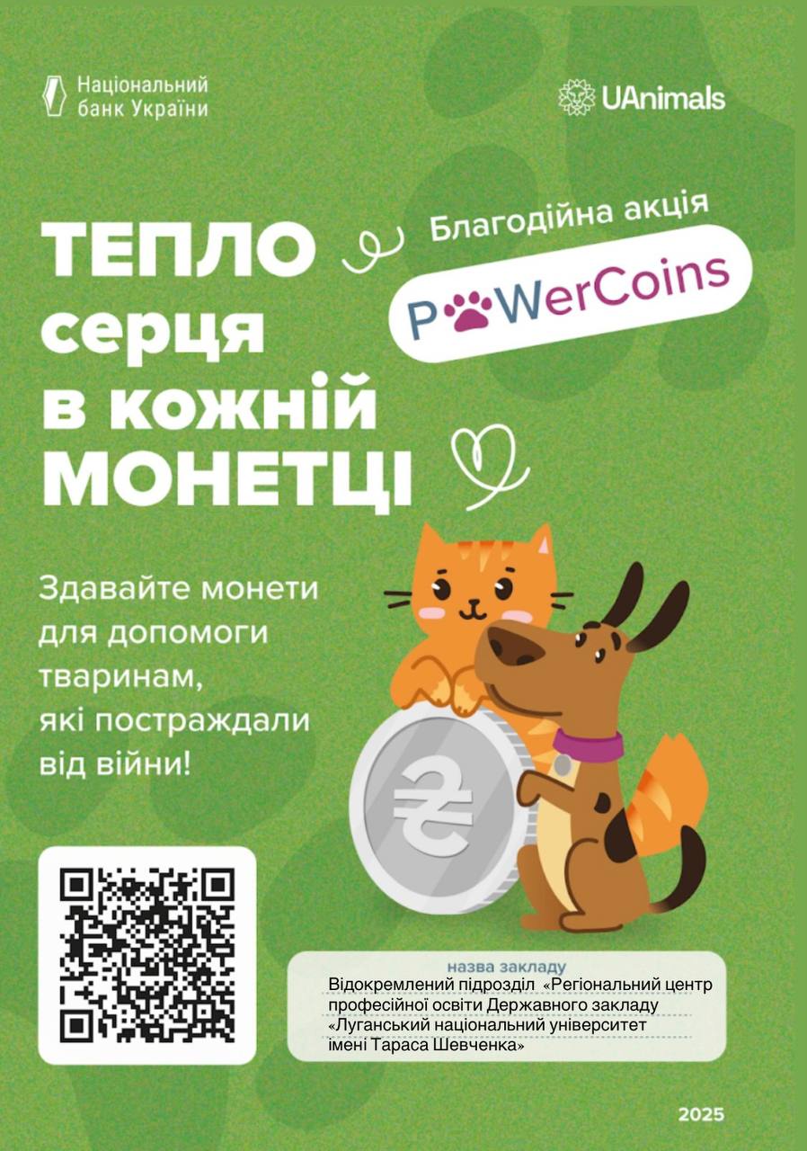 Наш заклад освіти долучається до всеукраїнської благодійної акції #PowerCoins, яку проводить Національний банк України спільно з UAnimals 🐶 — організацією, що рятує тварин і довкілля від наслідків війни та людської жорстокості.