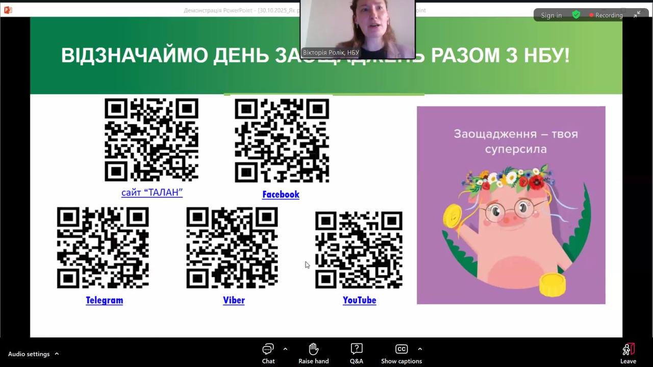 Вебінар став частиною освітніх ініціатив НБУ, спрямованих на підвищення рівня фінансової грамотності молоді та розвиток критичного мислення у сфері споживчих рішень.