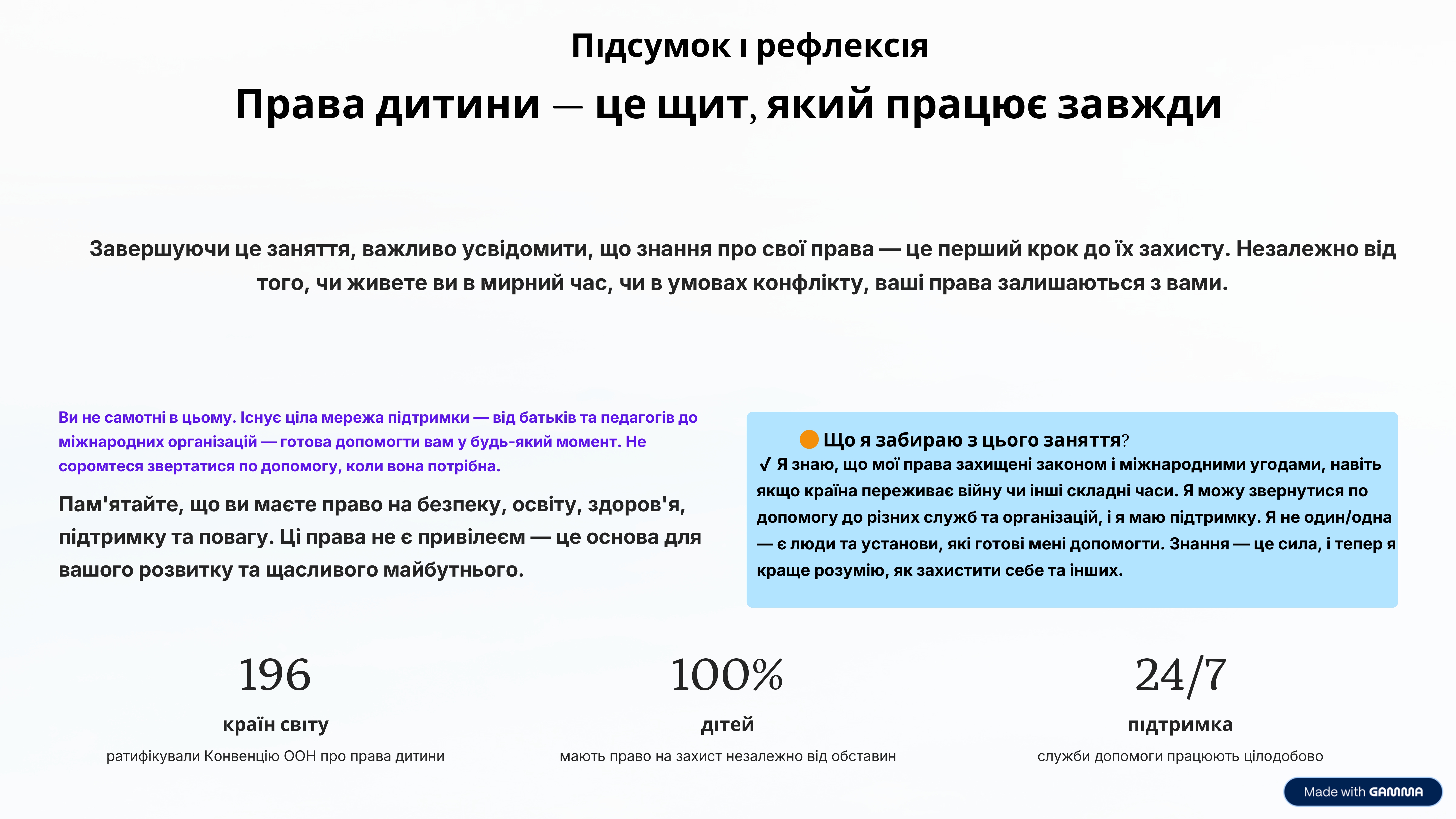 Мета заняття — дати дітям більше знань про їхні права, навчити впевнено ними користуватися, відчувати власну цінність і захищеність навіть у складні часи.