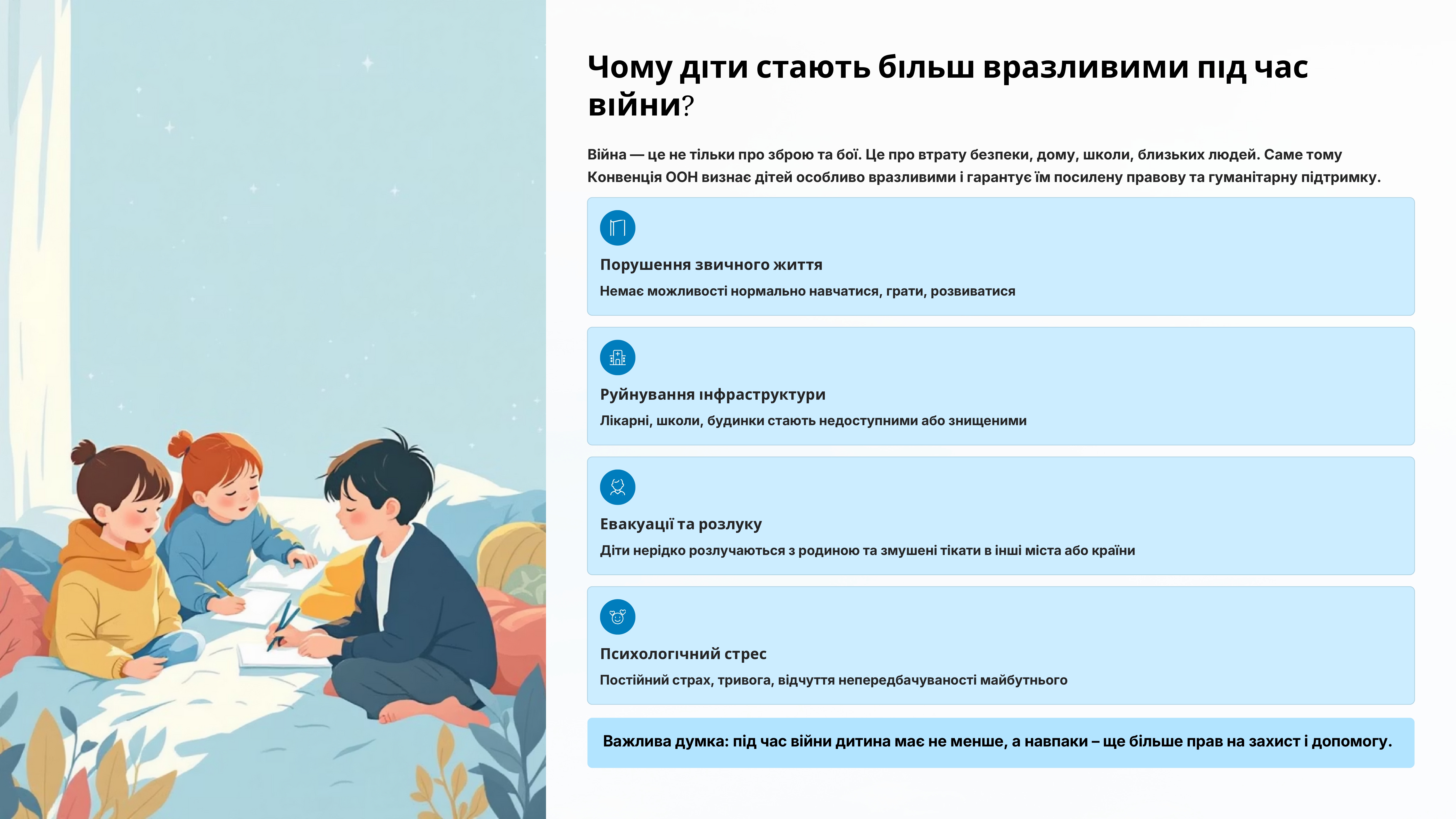 Урок розроблено ГО «Освіторія» разом із ЮНІСЕФ на основі посібника «Права дитини у мирний час і під час війни».