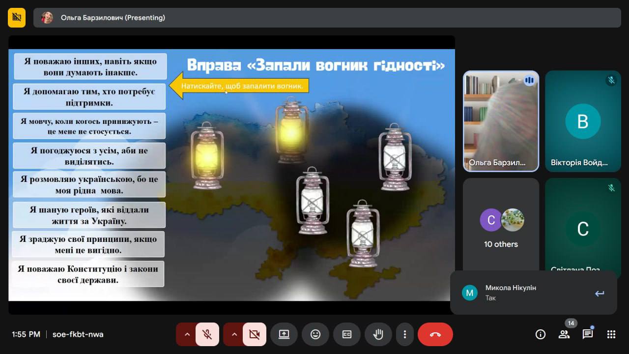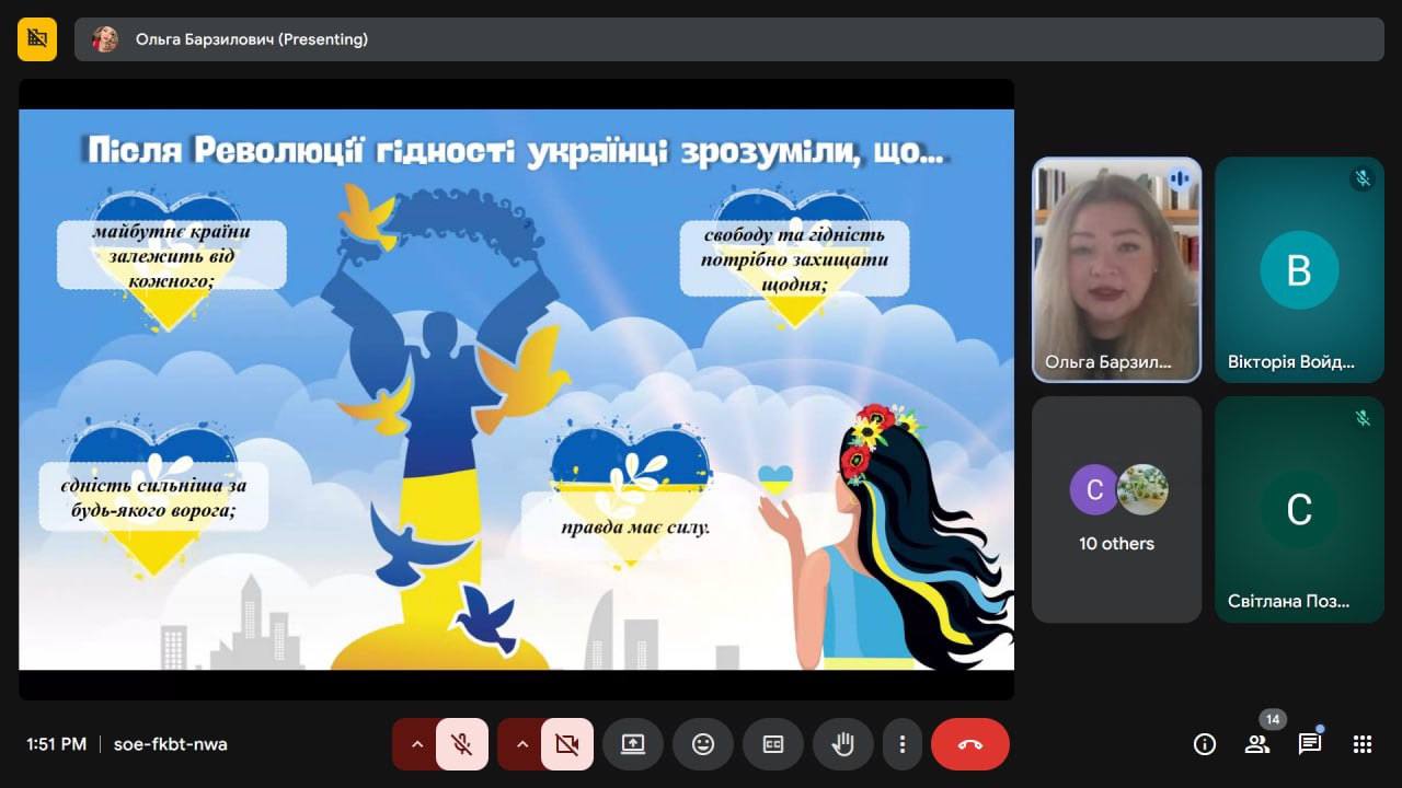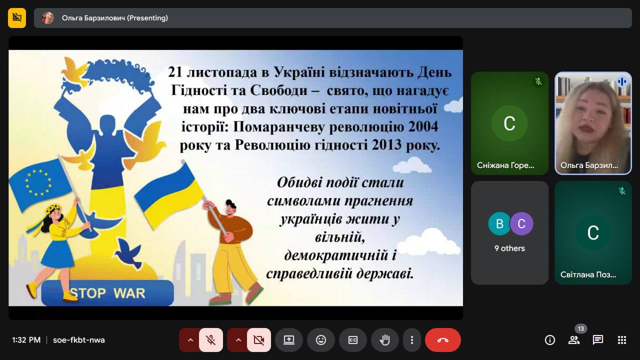 Для наших студентів відбувся відкритий захід «День Гідності та Свободи — щодня, без вихідних», який провела заступниця директора з навчально-виховної роботи Ольга БАРЗИЛОВИЧ.