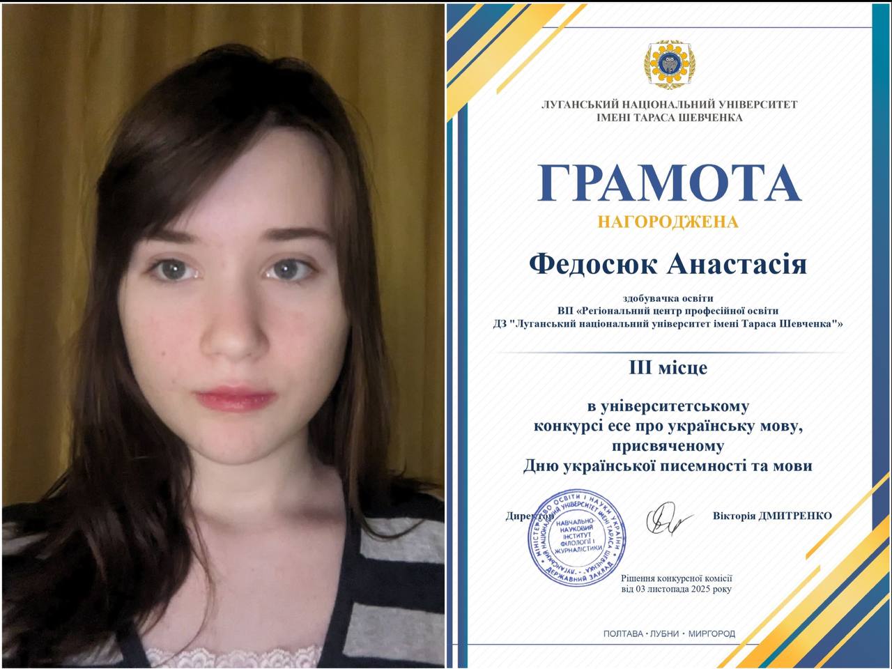 📘 ФЕДОСЮК Анастасія — ІІІ місце в університетському конкурсі есе про українську мову