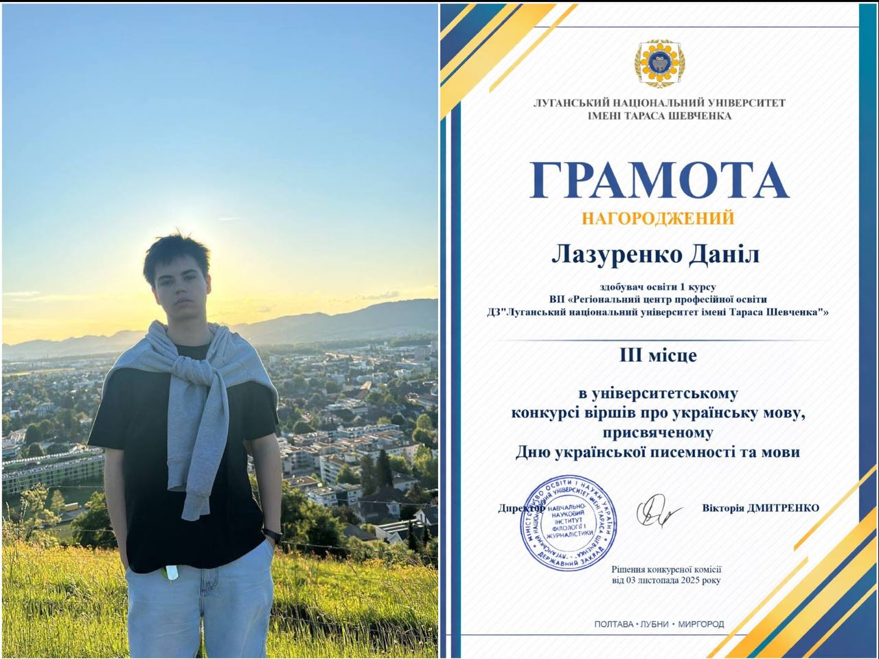 ✍️ ЛАЗУРЕНКО Даніл — ІІІ місце в університетському конкурсі віршів про українську мову