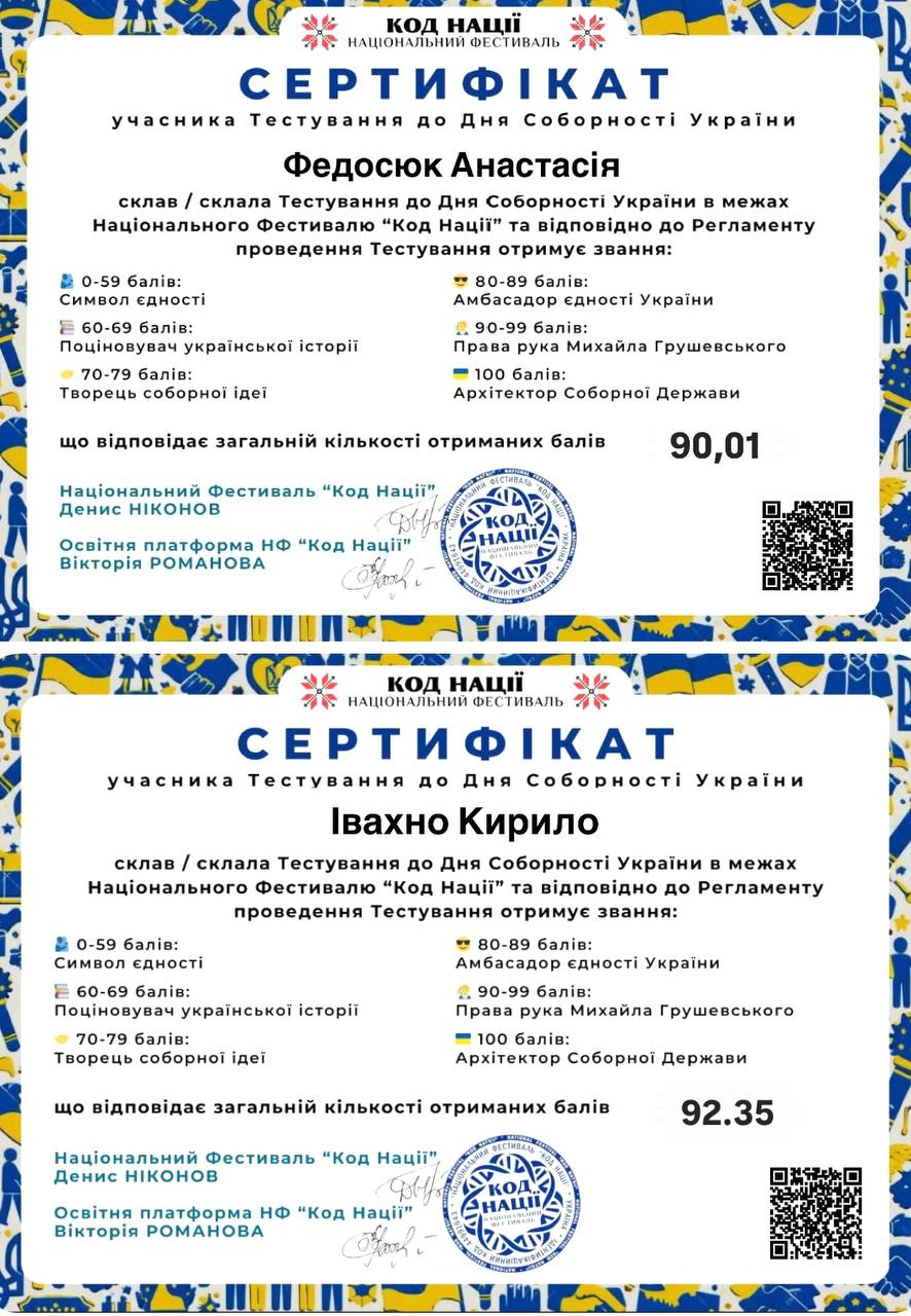 Студенти нашого закладу взяли участь у тестуванні, організованому Освітньою платформою Національного фестивалю «Код Нації», приуроченому до Дня Соборності України.