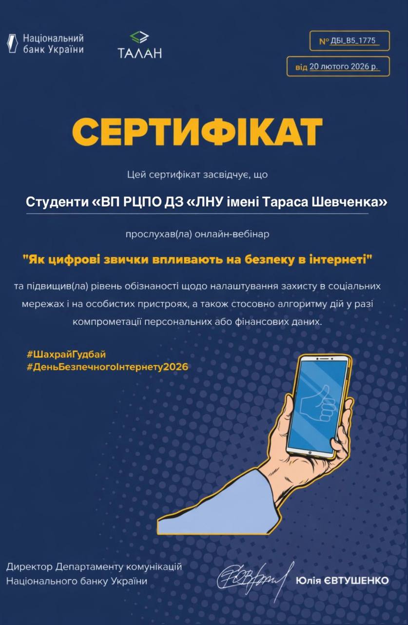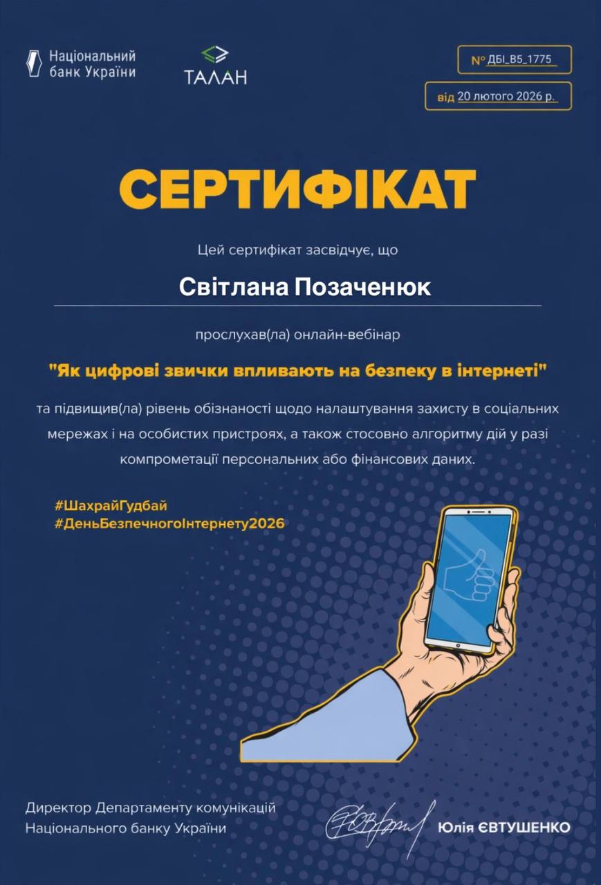 Формуємо культуру свідомого користування інтернетом та вчимося протидіяти шахрайству разом 💛💙