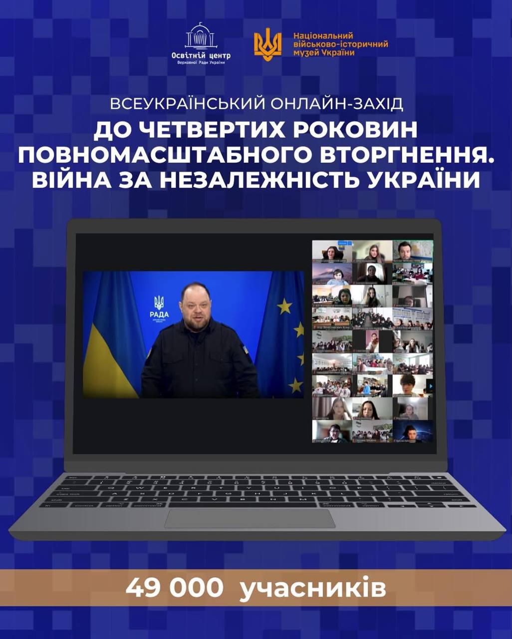До четвертих роковин повномасштабного вторгнення рф на територію України наші студенти та викладачі долучилися до Всеукраїнського онлайн-заходу, який провів Освітній центр Верховної Ради України. До участі в події зареєструвалися понад 49 000 учасників з усіх куточків країни.