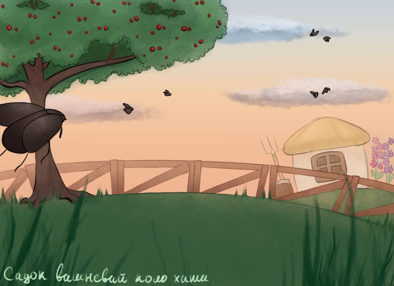 Натхненням для ілюстрації став один із найвідоміших творів Кобзаря — вірш «Садок вишневий коло хати». У своїй роботі Анастасія поєднала класичний український образ — затишну оселю, квітучі вишні, родинне тепло — із сучасною художньою формою цифрового мистецтва.