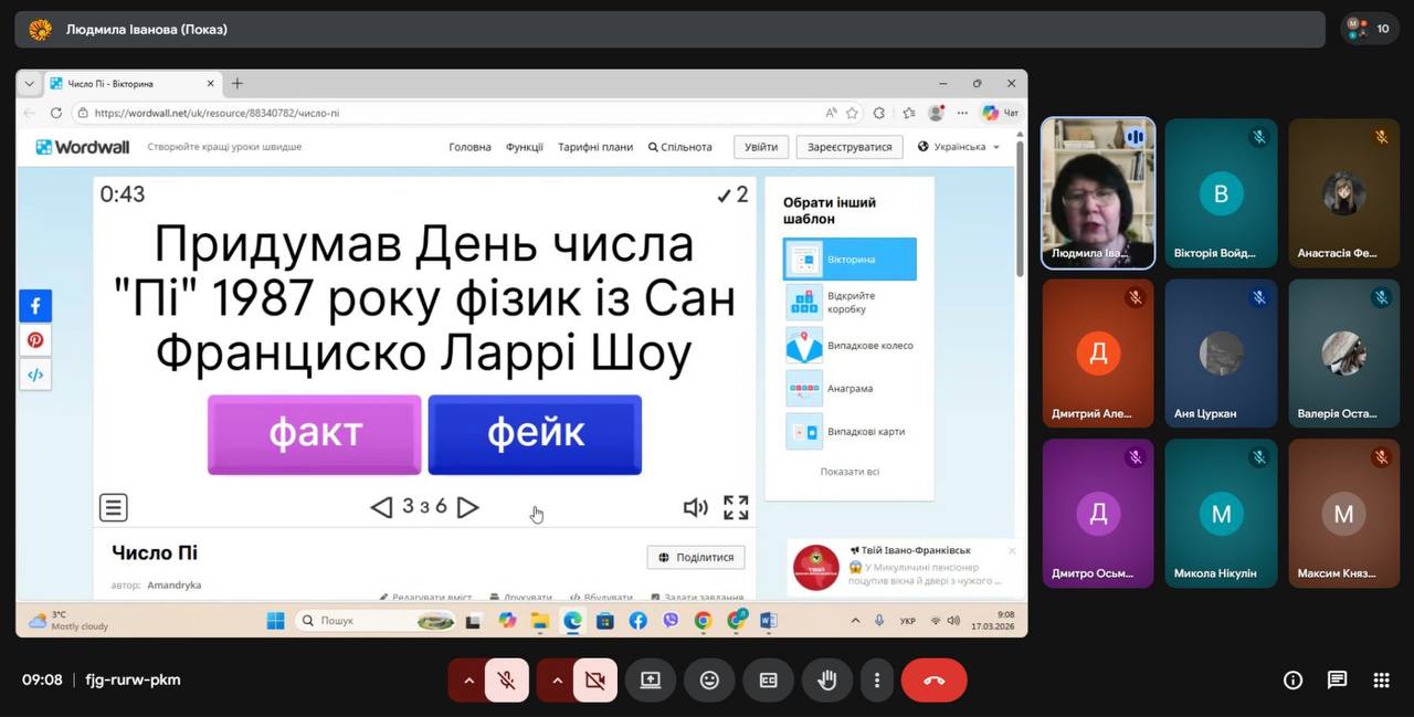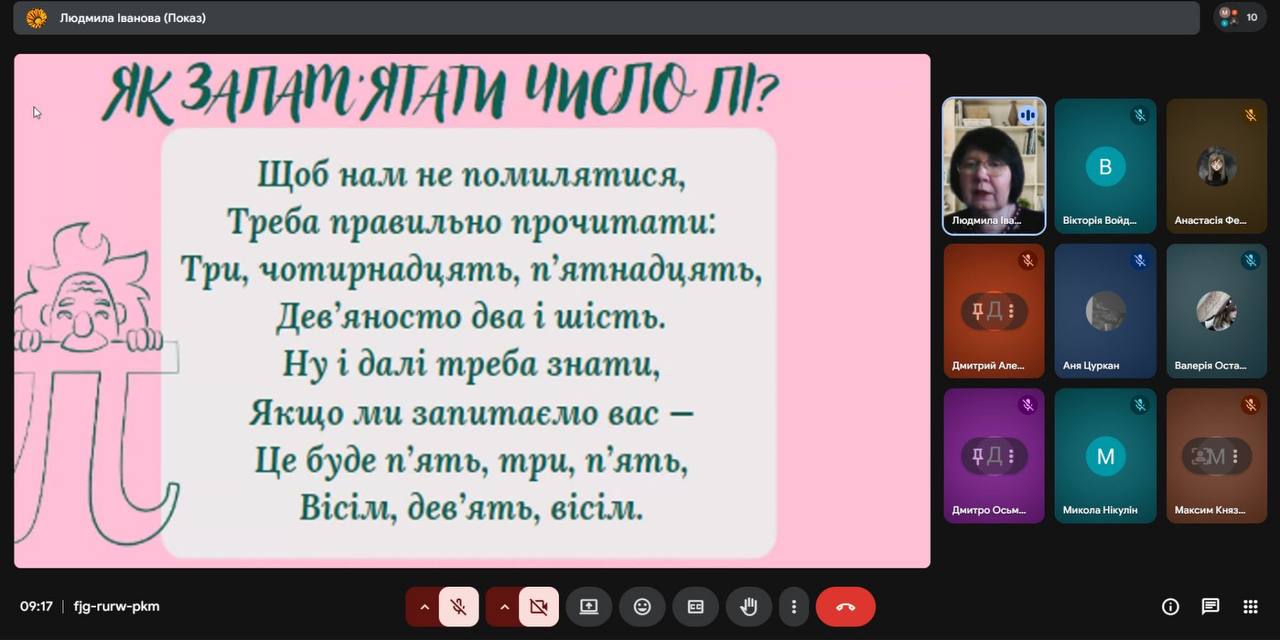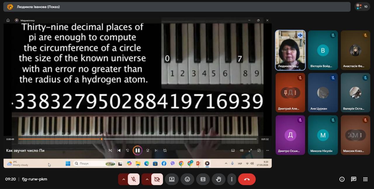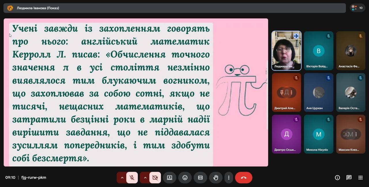Долучилася до цієї ініціативи й наша викладачка математики Людмила ІВАНОВА, яка провела для студентів групи ПЕМ-25 виховний захід на тему «Таємниче та дивовижне число Пі».
