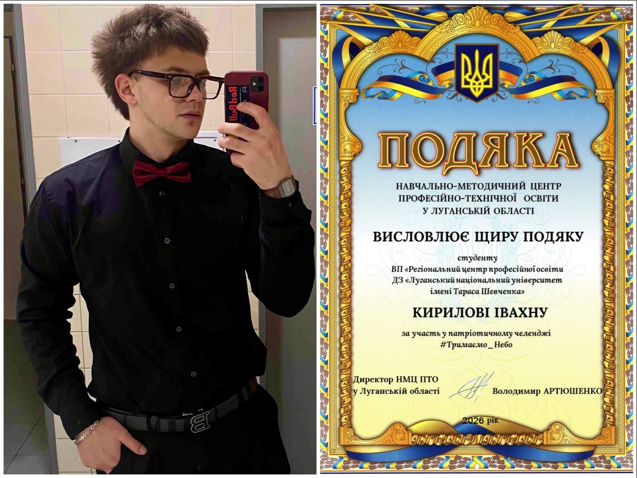 З радістю ділимося приємною новиною! Наш студент Кирило ІВАХНО отримав Подяку від Навчально-методичного центру професійно-технічної освіти у Луганській області за участь у патріотичному челенджі #Тримаємо_Небо.