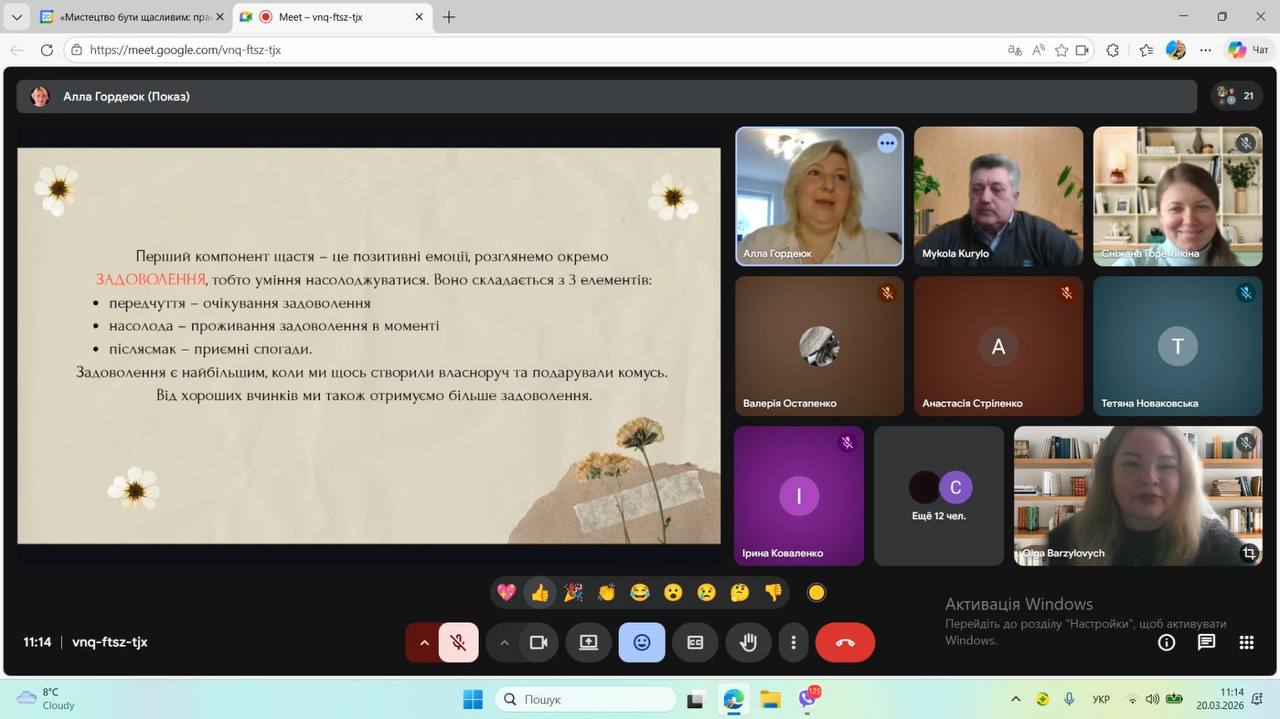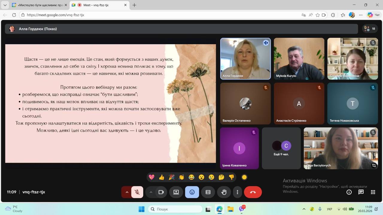 Сьогодні, до Міжнародного дня щастя (20 березня), у нашому закладі відбувся вебінар-практикум «Мистецтво бути щасливим: практикум позитивного мислення».
