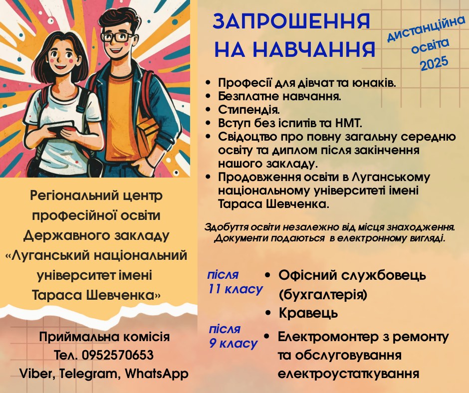 Запрошуємо для здобуття освіти випускників 9-х та 11-х класів за професіями: