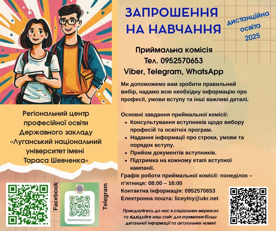 • Консультування вступників щодо вибору професій та освітніх програм.